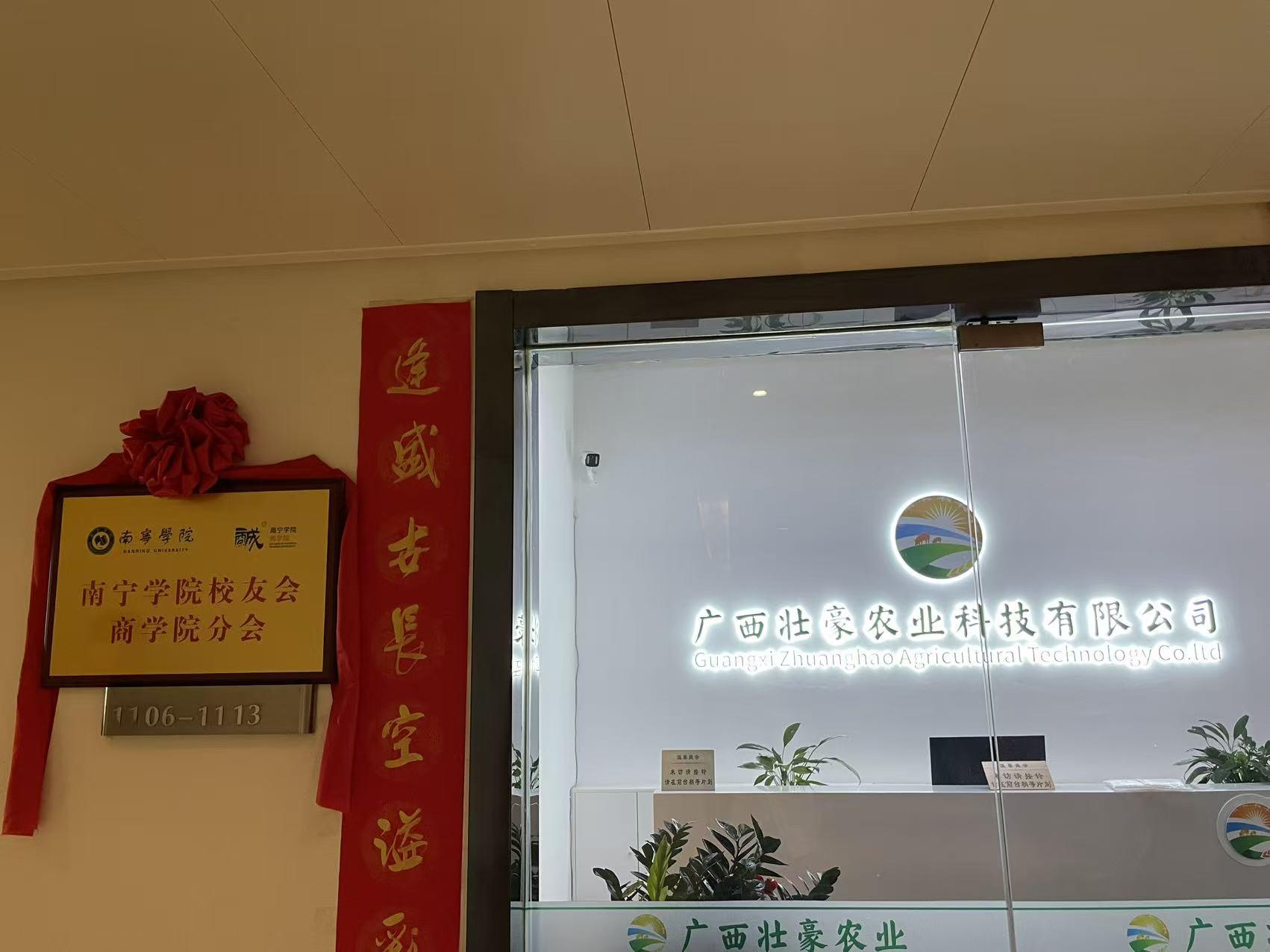 11月14日下午,我校2011届工商企业管理校友、广西壮豪农业科技有限公司董事长黄宥铭向母校捐赠60万元仪式在位于南宁龙光国际广场的公司会议室隆重举行。南宁学院副校长、校友总会会长龚击,校办(校友办)主任李林伟、商学院院长汪涛、李晓芬教授代表学校出席捐赠仪式及相关活动。