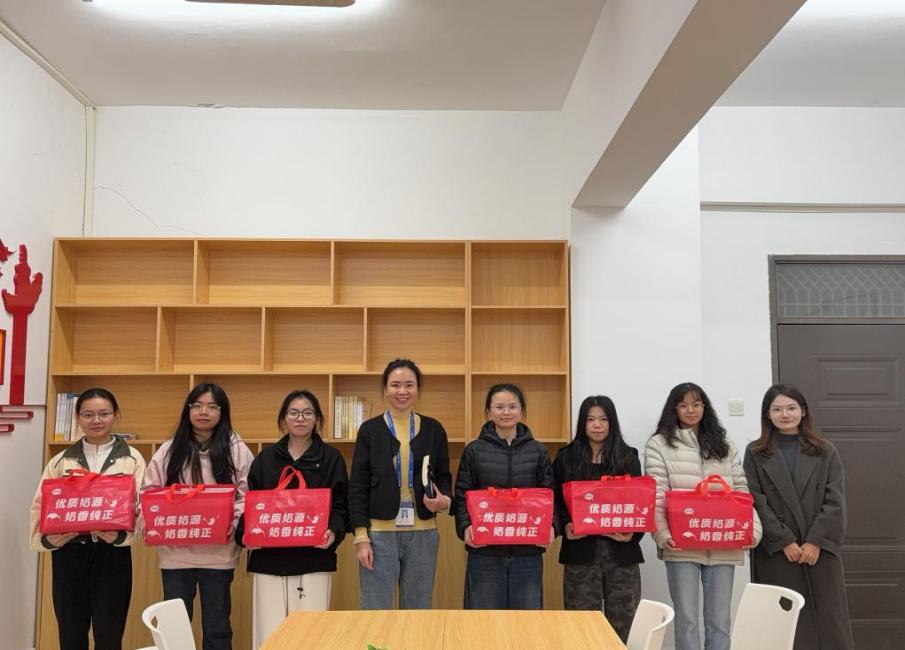 “假期食堂饭菜还合胃口吗?”“实习进展得顺利吗?”“有没有什么困难需要我们帮忙的?”覃副书记亲切询问同学们的学习规划、生活需求与实践情况,细致了解每位同学留校期间的真实状态。她认真倾听同学们的寒假安排,时而点头赞许,时而轻声追问,言语间满是关切。座谈会后,覃副书记为每一位同学送上学院精心准备的新春慰问礼包,礼轻情重,这份心意承载着学院对留校学子沉甸甸的牵挂。