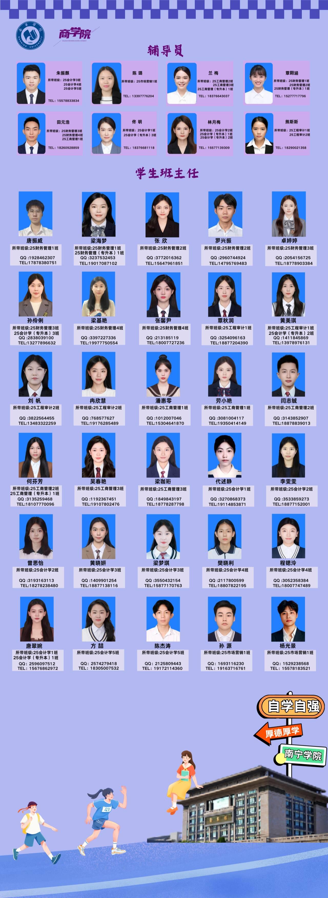 大家好!现下发商学院2025年各班级辅导员、学生班主任信息表。
