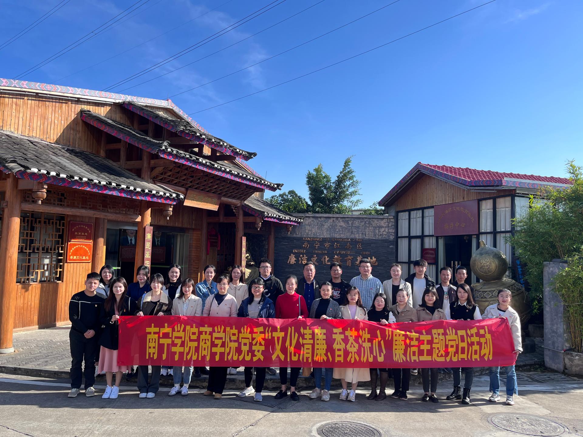 为推进廉洁文化建设,丰富廉洁文化内涵,营造风清气正的政治生态,让教师党员接受廉洁文化的熏陶,以茶明廉、以茶敬廉、以茶促廉、以茶弘廉。2023年11月17日,商学院党委以及教师党支部共27人前往江南区廉洁文化教育基地开展“文化清廉,香茶洗心”廉洁主题党日活动。