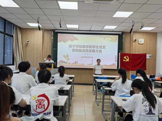 为夯实党的后备力量根基,为党组织输送新鲜血液,2025621日,商学院5个学生党支部召开预备党员发展大会,讨论秦梁芳等35名同志的预备党员发展事宜。商学院各学生党支部书记、各支部全体学生党员参会,以严肃规范的流程,见证青春向党的进阶。
