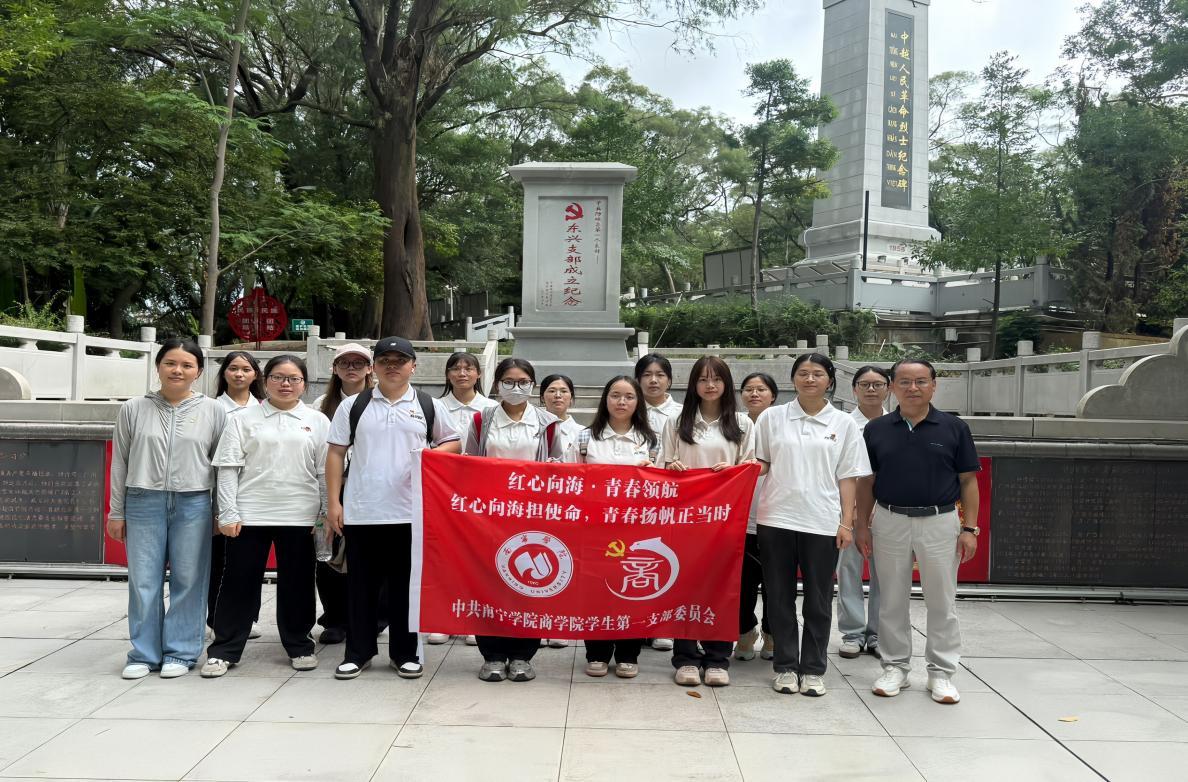 商学院学生第一党支部在东兴支部成立纪念碑前合影