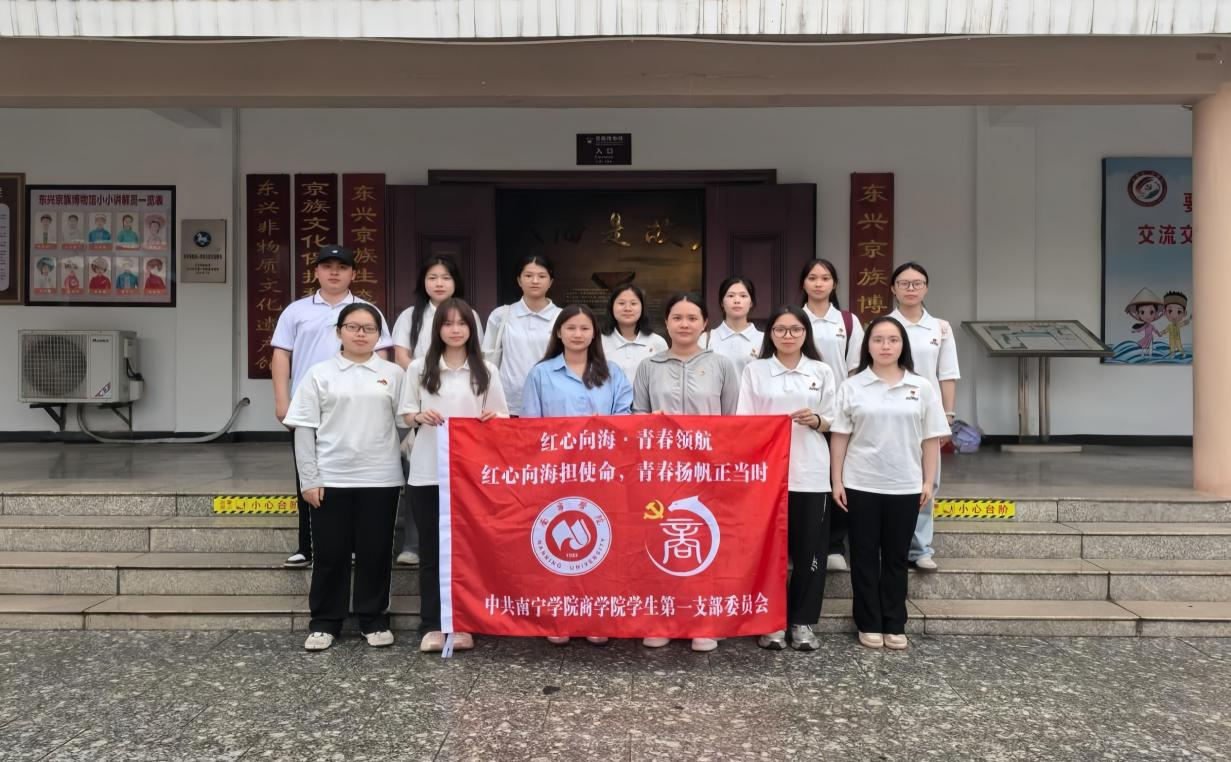 午后,队伍抵达大清国一号界碑景区。这座历经沧桑的石碑,见证了近代以来国界的明晰与主权的确立。陈雄章教授在此铺展219国道的壮阔画卷——这条被誉为“中国最美边境公路”的交通大动脉,起点就在眼前,蜿蜒向北直至新疆喀纳斯,如一条坚韧的纽带将祖国万里边陲紧密相连。青年党员为传承红色基因,赓续革命血脉,筑牢党员同志理想信念根基,2025年5月17日,南宁学院商学院学生第一党支部在陈雄章教授的带领下,深入防城港东兴市边境一线,以一场“向海图强,青春担当”的主题党日活动叩问初心,汲取力量。党支部的青年党员们穿梭于繁忙的东兴口岸与承载历史记忆的胡志明亭之间,在中越友谊大桥与1368(1号)界碑旁聆听无声宣言;他们驻足于东兴侨批馆,感悟纸短情长的赤子丹心;他们肃立于中越友谊公园烈士纪念碑前,缅怀不朽忠魂;他们探访大清国一号界碑景区,感受219万里国道的壮阔起点;他们走进巫头村哈亭与东兴京族博物馆,沉浸探寻京族“心向北京”的深厚文化根脉。这趟边疆之行,不仅是一次知识的拓展,更是一次精神的洗礼,为青年党员们锚定了将个人理想融入国家向海图强伟业的行动坐标。