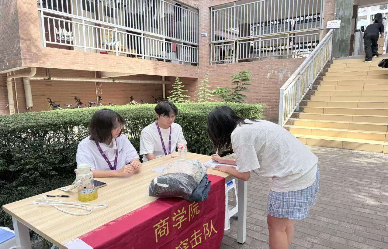 活动前期,党支部精心筹备,明确捐赠物资标准,清晰规划物资用途,提前完成摊位布置、物资筹备及人员分工等工作,为活动有序开展筑牢基础。活动期间,支部党员化身志愿者,在各楼栋楼下的回收摊位前热情接待前来捐赠的师生,耐心引导大家登记捐赠信息。捐赠现场暖意融融,师生们纷纷将家中洗净叠好的闲置衣物、鞋帽、背包,以及保存完好的书籍送至摊位;不少同学还主动分享衣物、书籍背后的故事,希望这份善意能为有需要的人带去温暖与精神滋养。