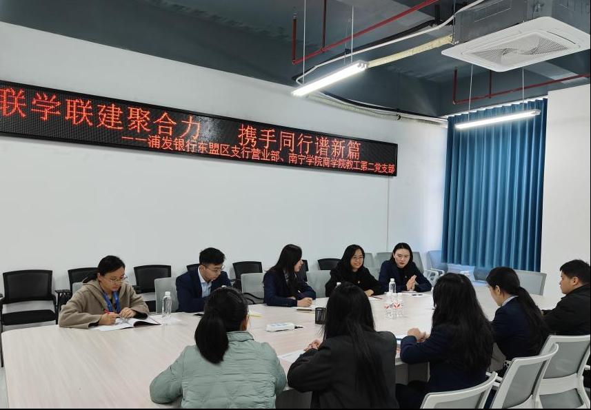 【青凝商聚·桂砺芳华】联学共建促融合,银校合作启新篇——商学院教工第二党支部与浦发银行东盟区支行党支部联合开展主题党日活动