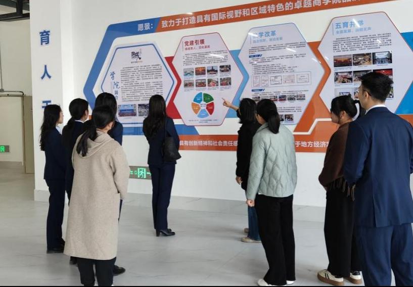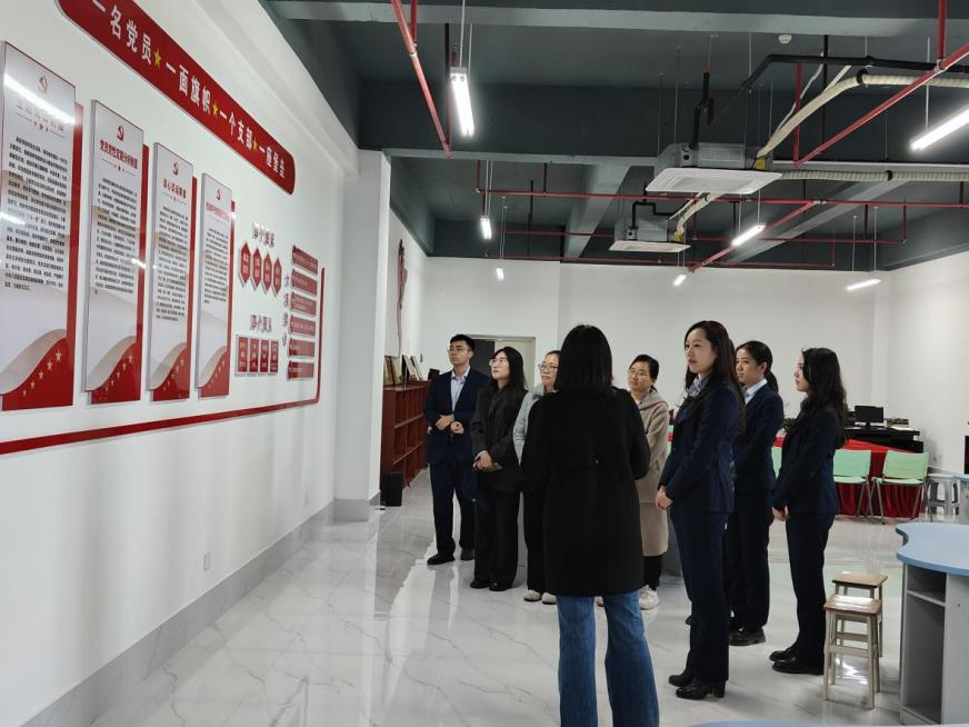 会后,在商学院教工第二党支部宣传委员熊雅君的引导下,浦发银行党员参观了商学院党员活动室熊雅君系统介绍了活动室的功能布局、文化墙设计理念以及其作为党员理论学习、组织生活开展、党性修养锤炼的重要阵地等情况,展示了学院在党建阵地规范化建设、党建文化氛围营造等方面的显著成效,得到了来访党员的高度认可。