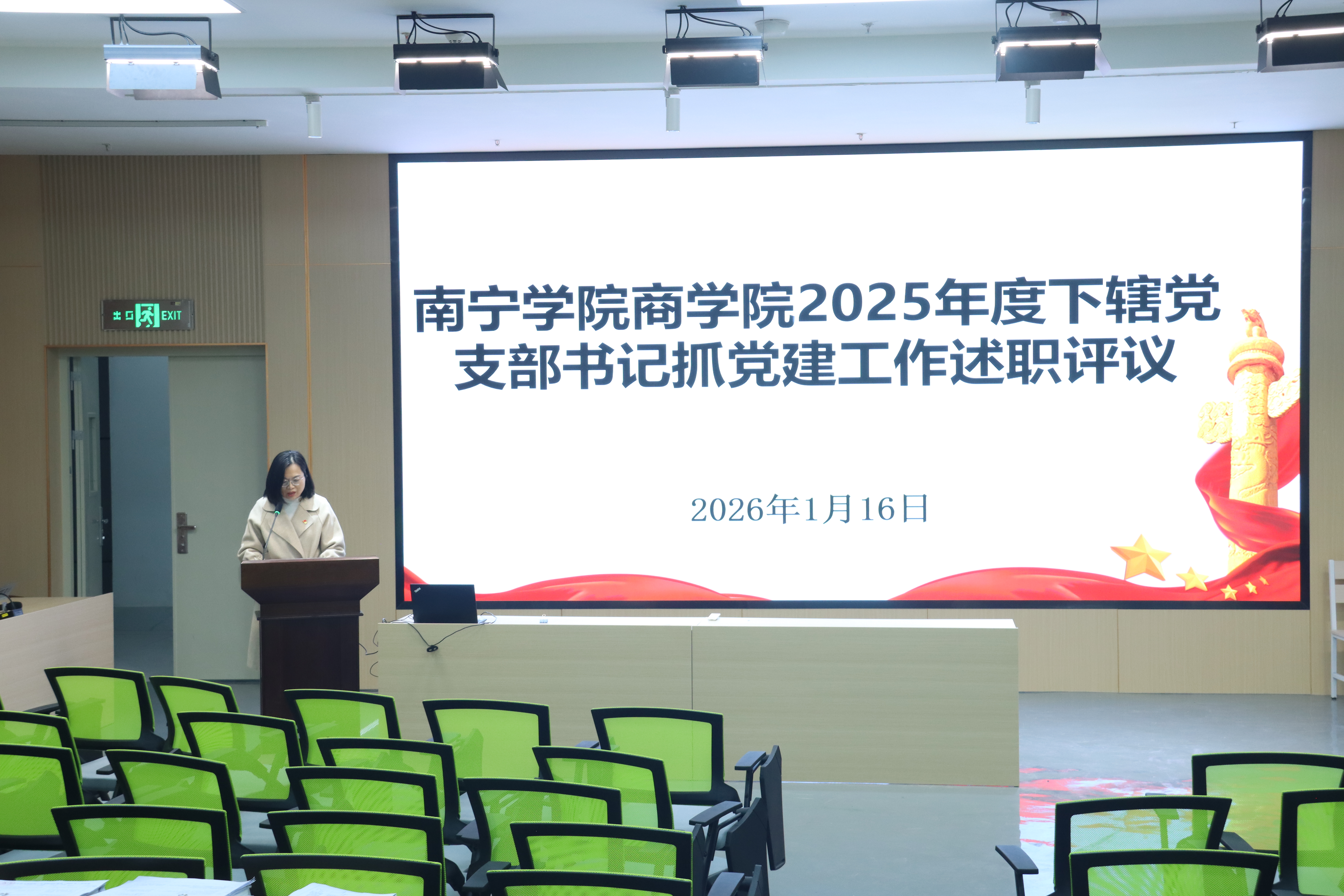 为压实基层党建工作责任,推动党支部建设提质增效,20261月16日,南宁学院商学院召开2025年度下辖党支部书记抓党建工作述职大会,商学院党委全体委员下辖八个党支部书记及党员代表参与会议。会议议程由商学院党委下辖党支部书记述职发言和评议组现场民主评议组成,为以高质量党建引领学院事业高质量发展凝聚坚实思想共识、汇聚强劲行动合力。