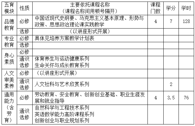 五育模块课程设置一览表