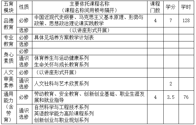 五育模块课程设置一览表