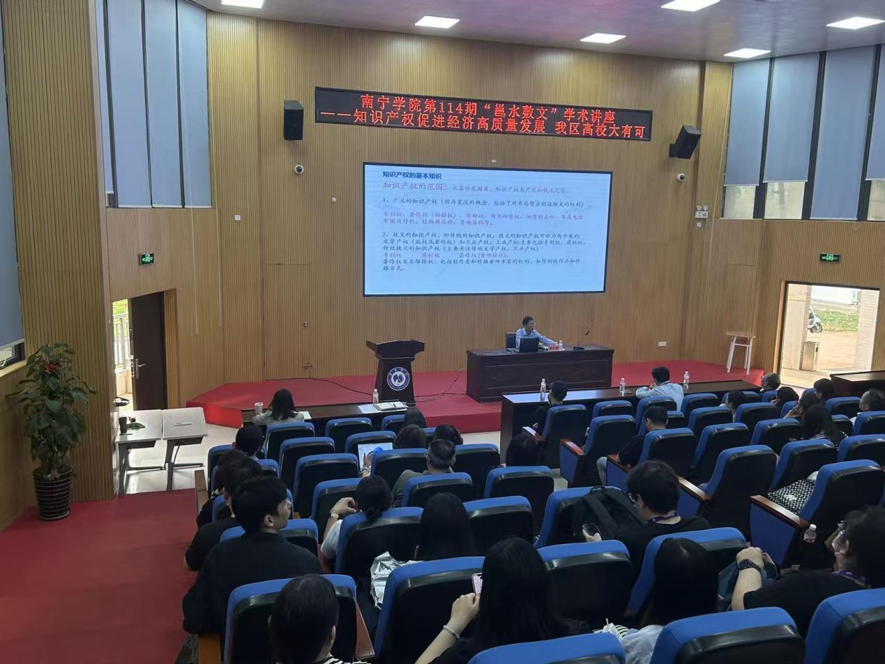 2025325日下午,南宁学院商学院成功举办“知识产权促进经济高质量发展我区高校大有可为”专题讲座。本次讲座特邀广西壮族自治区市场监督管理局原一级巡视员、知识产权局局长钟会超担任主讲嘉宾,为学院师生深入解读当前知识产权事业发展形势及高校在促进经济高质量发展中的重要使命。